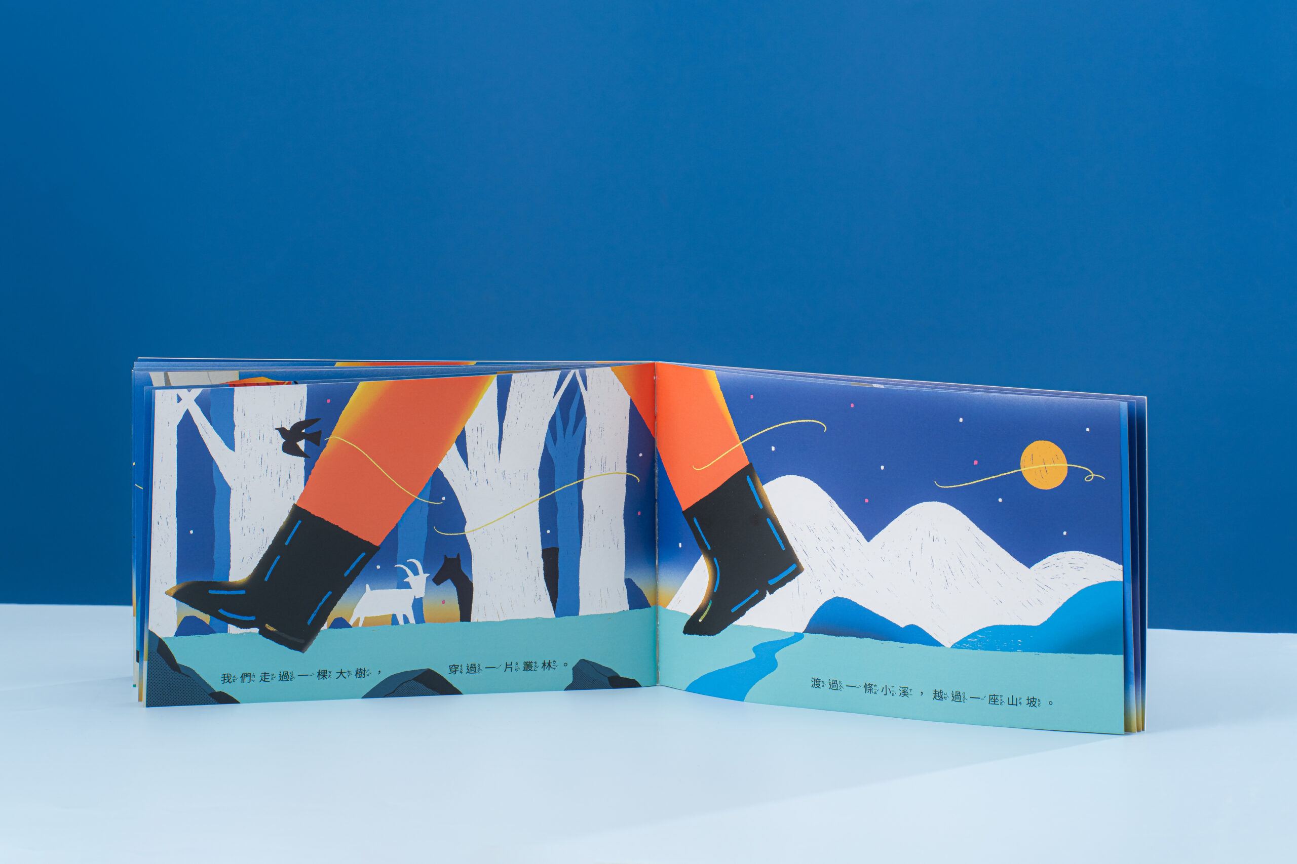 美感細胞設計師黃馨,長期深耕教育設計,對孩童的色彩與造型美感敏銳,每一個光影細節都充滿驚喜。在她的筆下,放學後回家的路途景緻,化作動物的剪影,靛藍色的月夜氛圍,也輕輕呼應暗房中光影流動的靜謐感受。