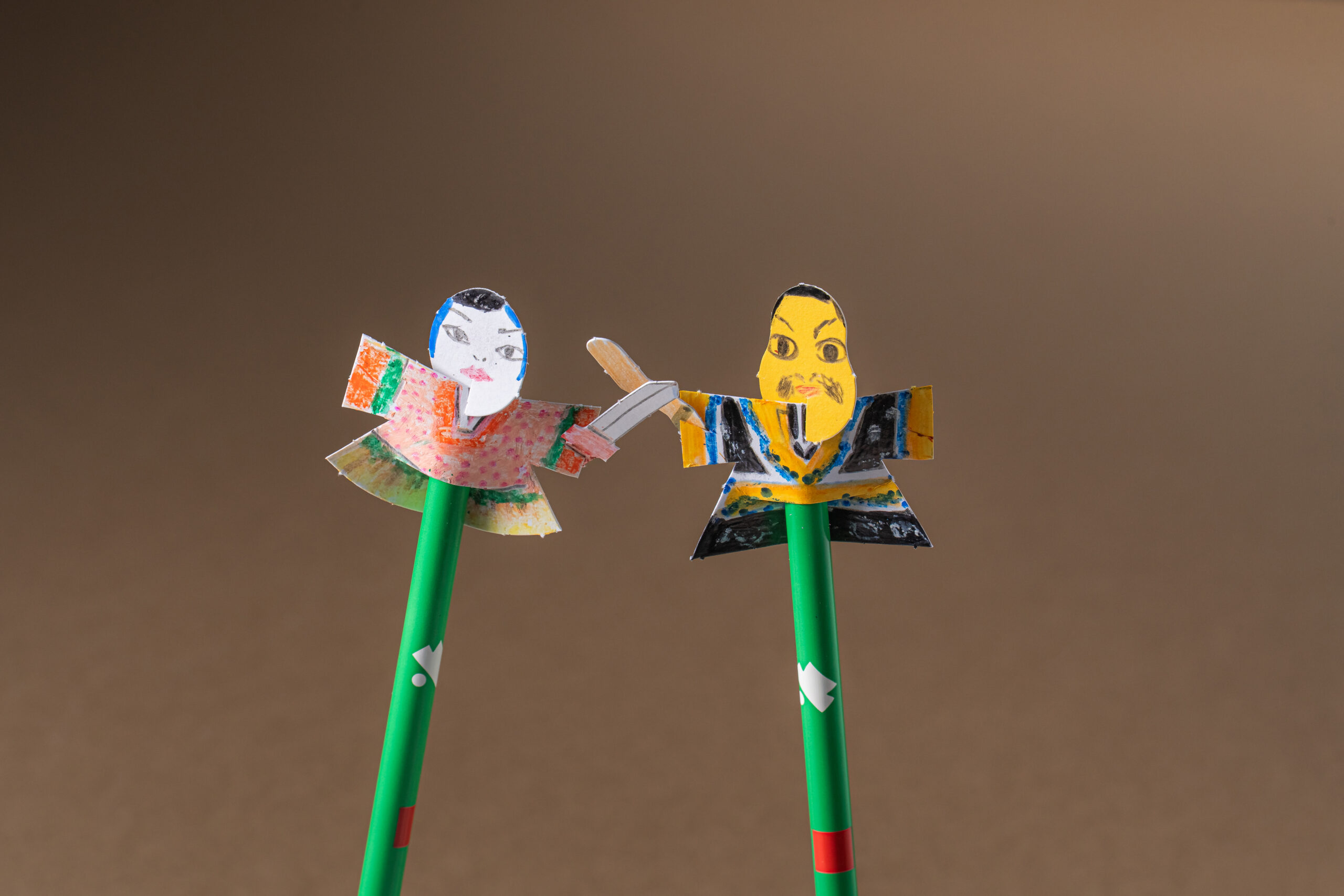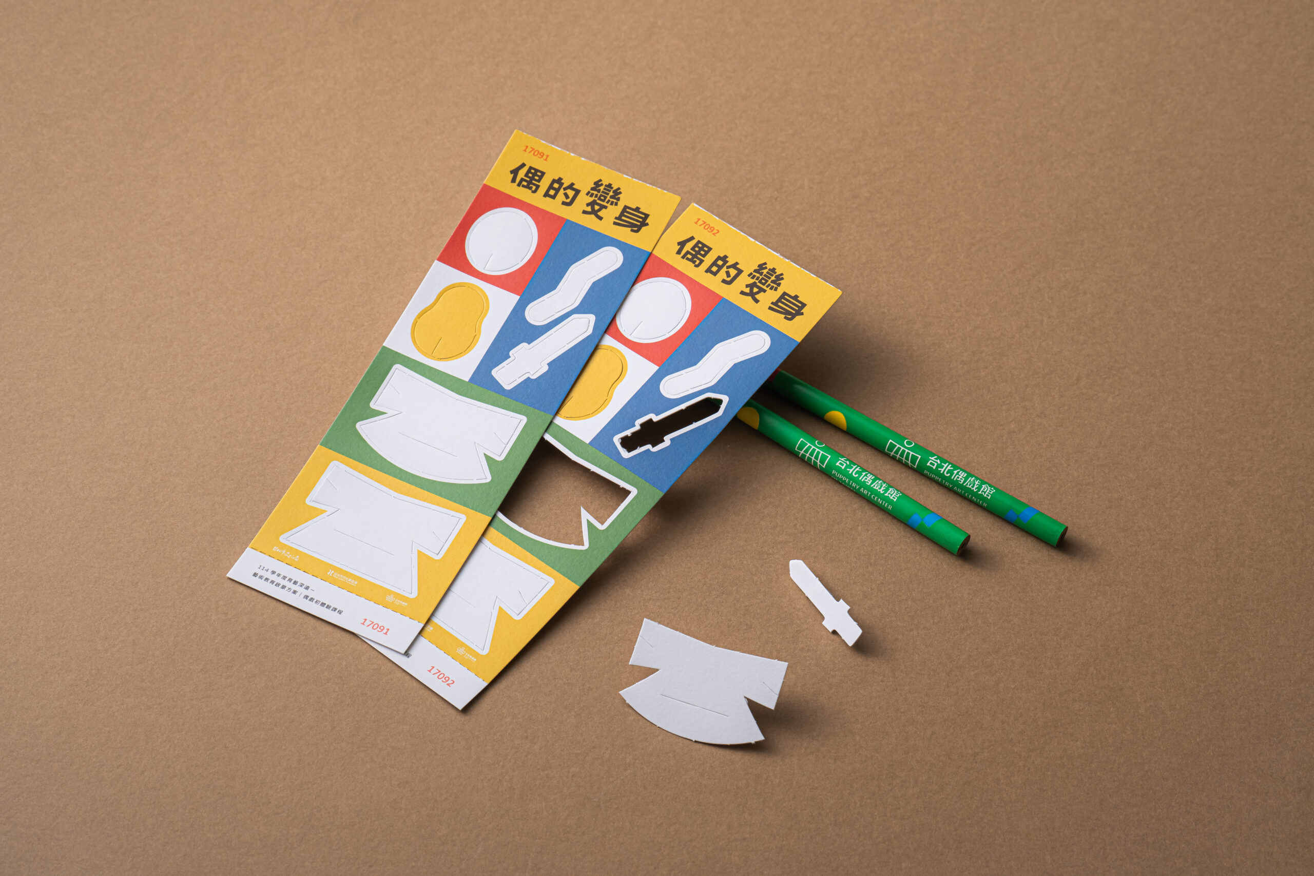 結合「杖頭偶」設計巧思,將票券轉化為可拆解、重組、繪製的偶身材料,筆身作為操縱票偶的支桿,呈現簡易操偶互動情境。