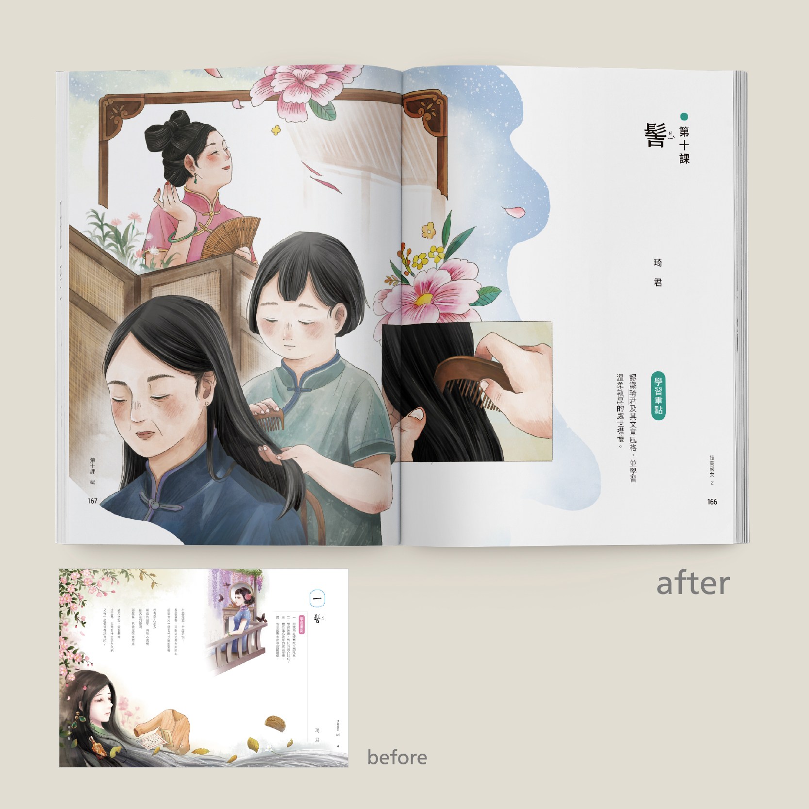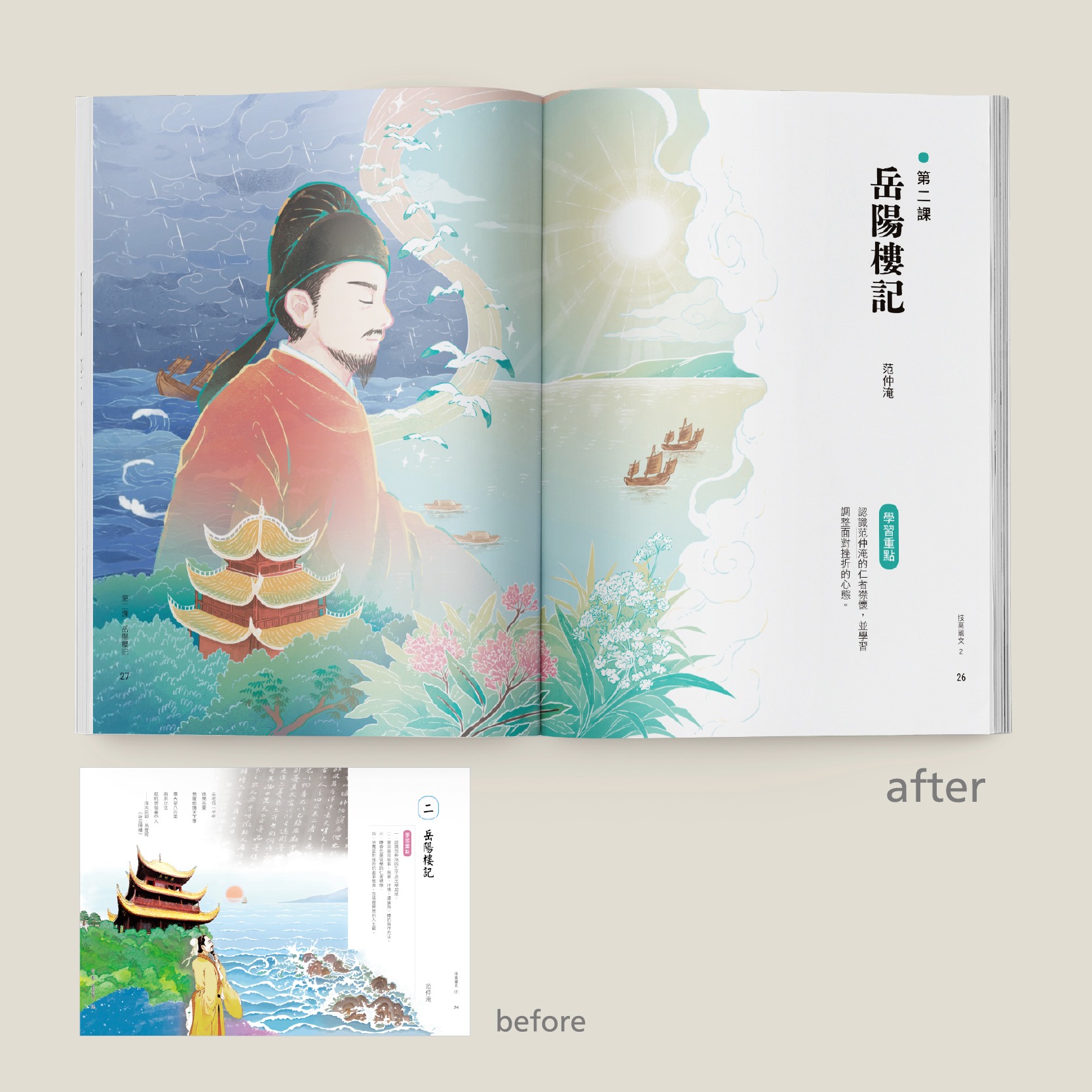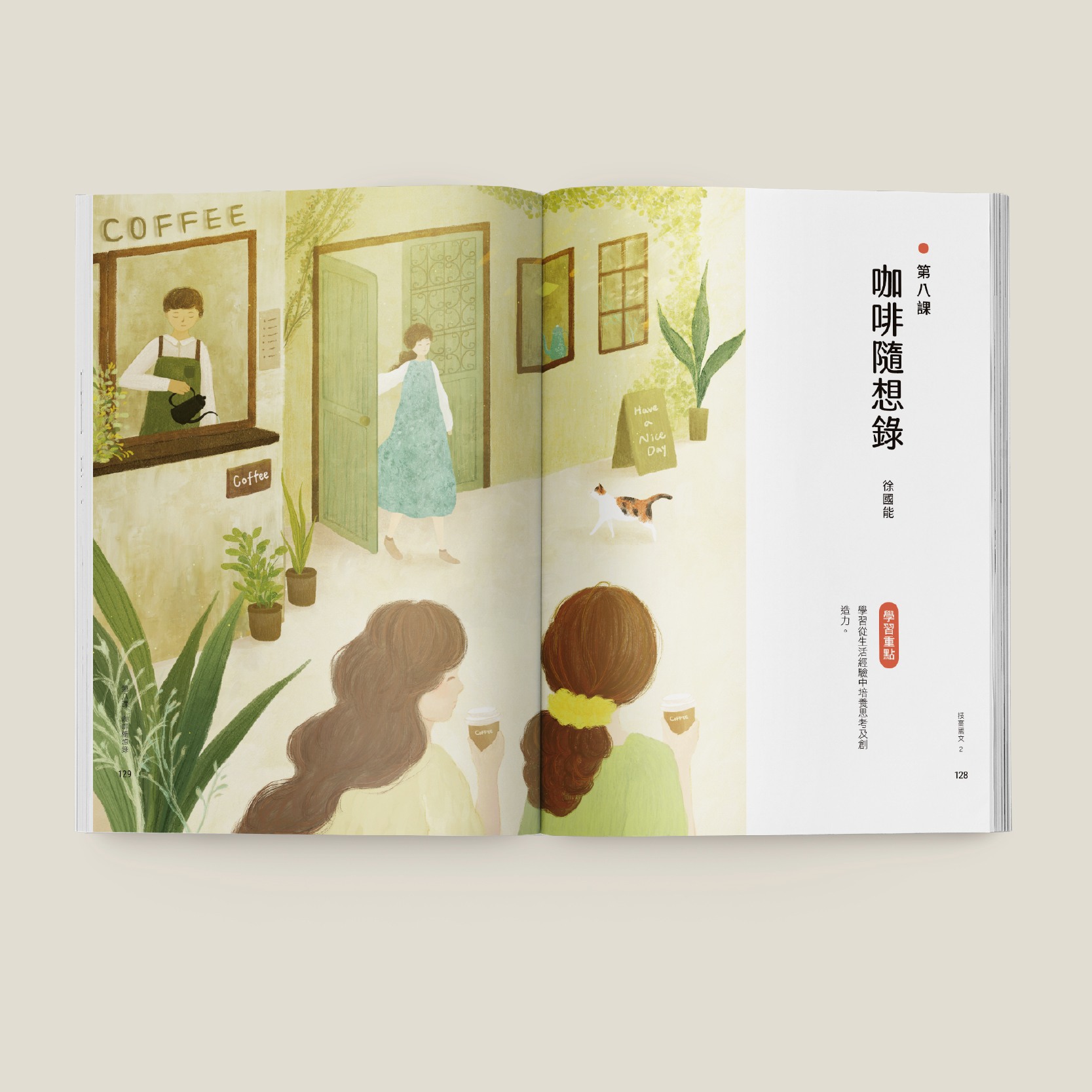 第二冊持續由走向設計執行視覺統籌,透過插畫情境,展現課文的意境、沉浸在學習中!