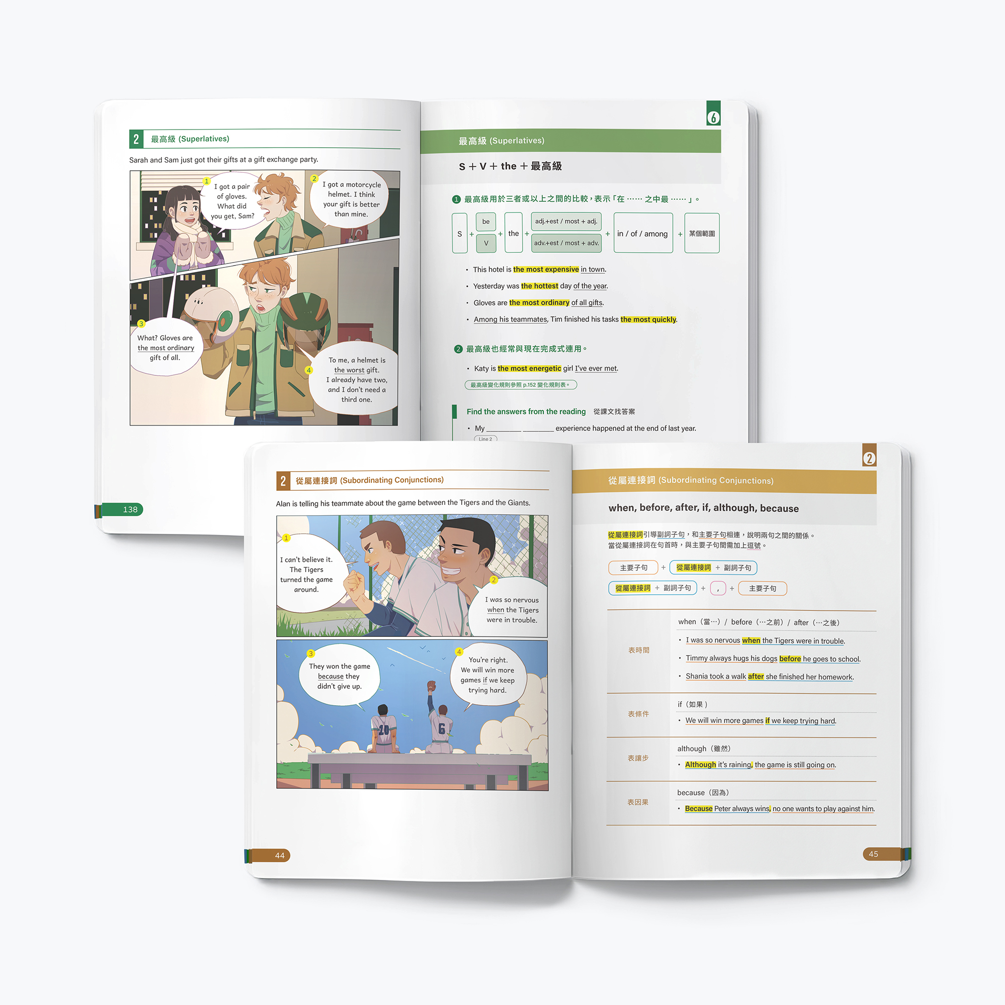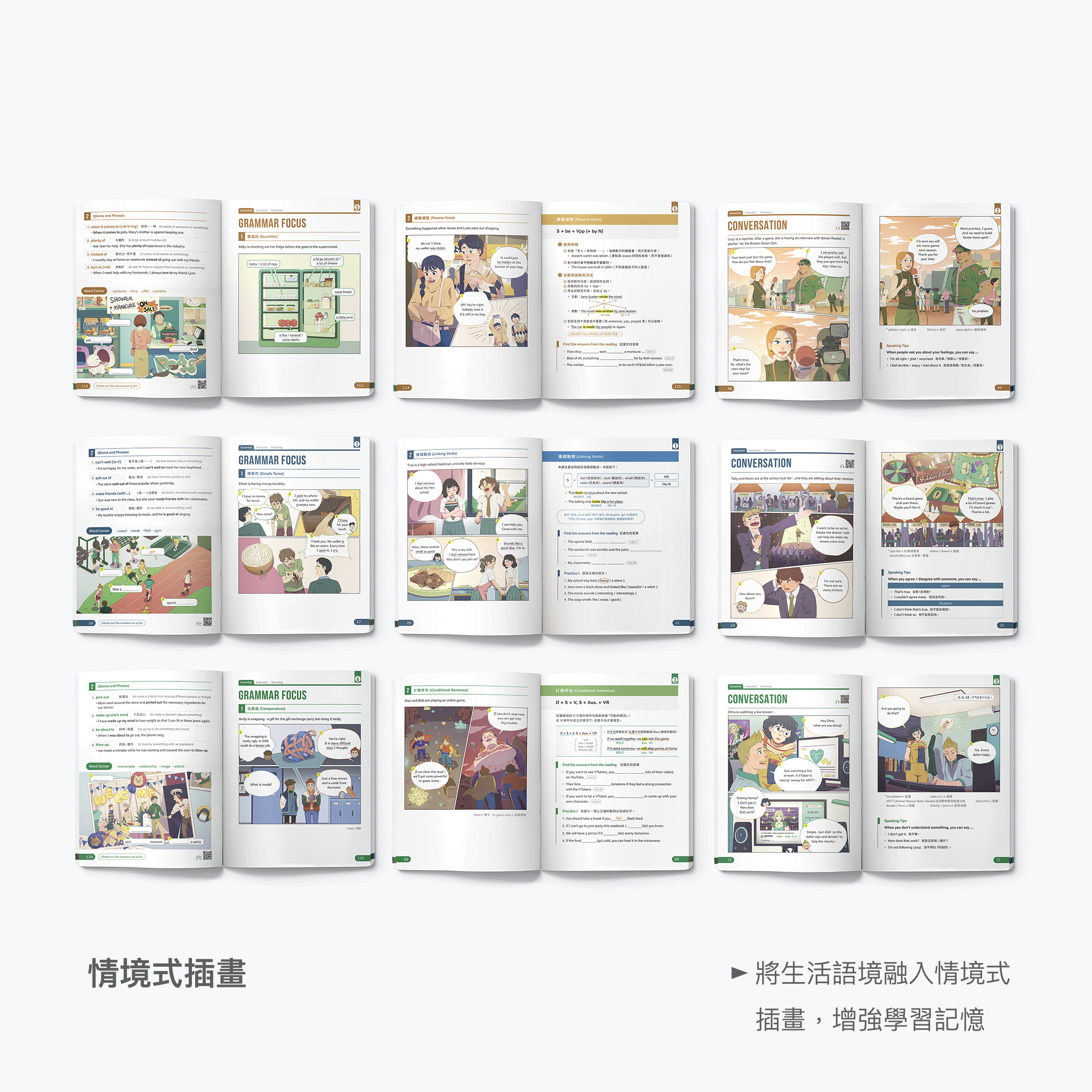 ▍沉浸式功能插畫設計:運用情境式漫畫,營造活潑輕鬆的學習氛圍,插畫同時具備導讀功能,協助學生理解學習重點,增強學習動機與記憶。