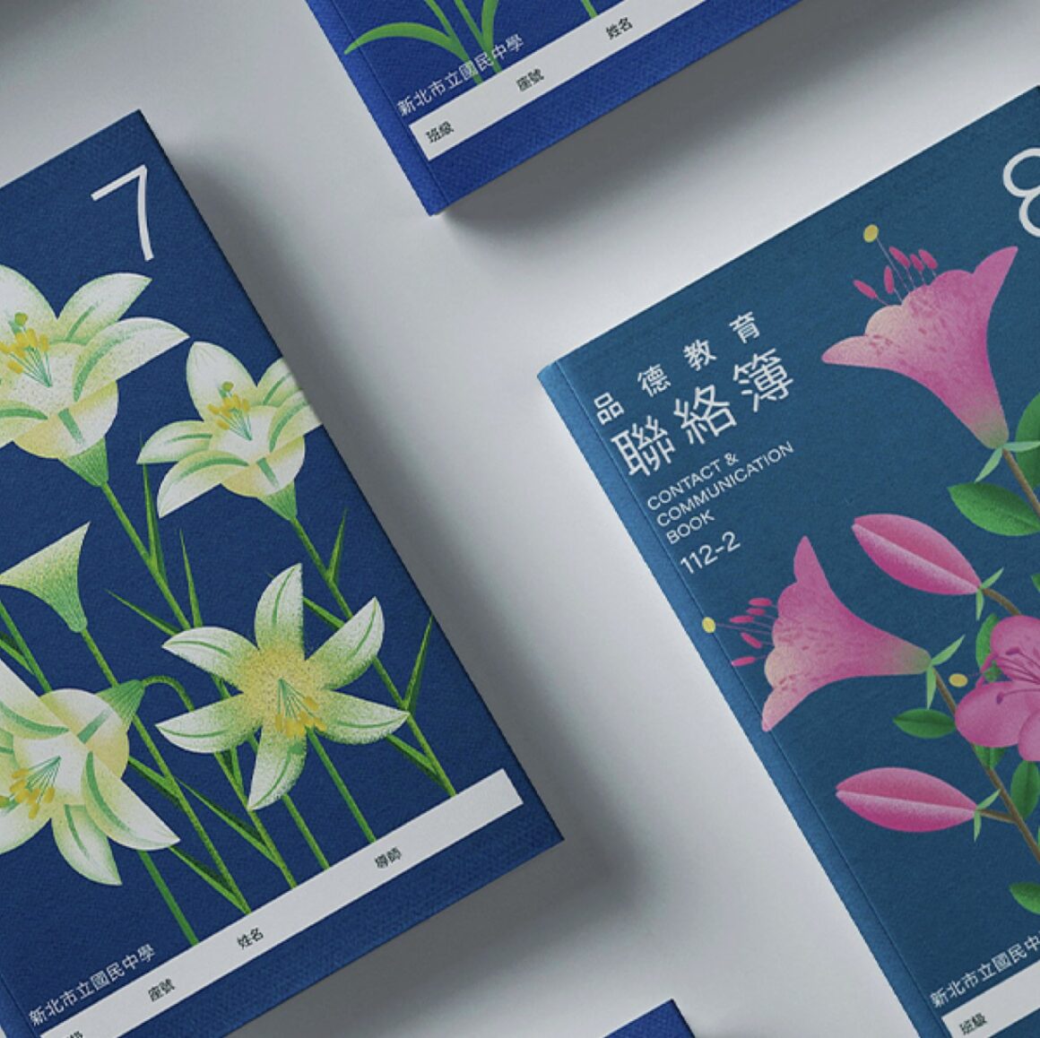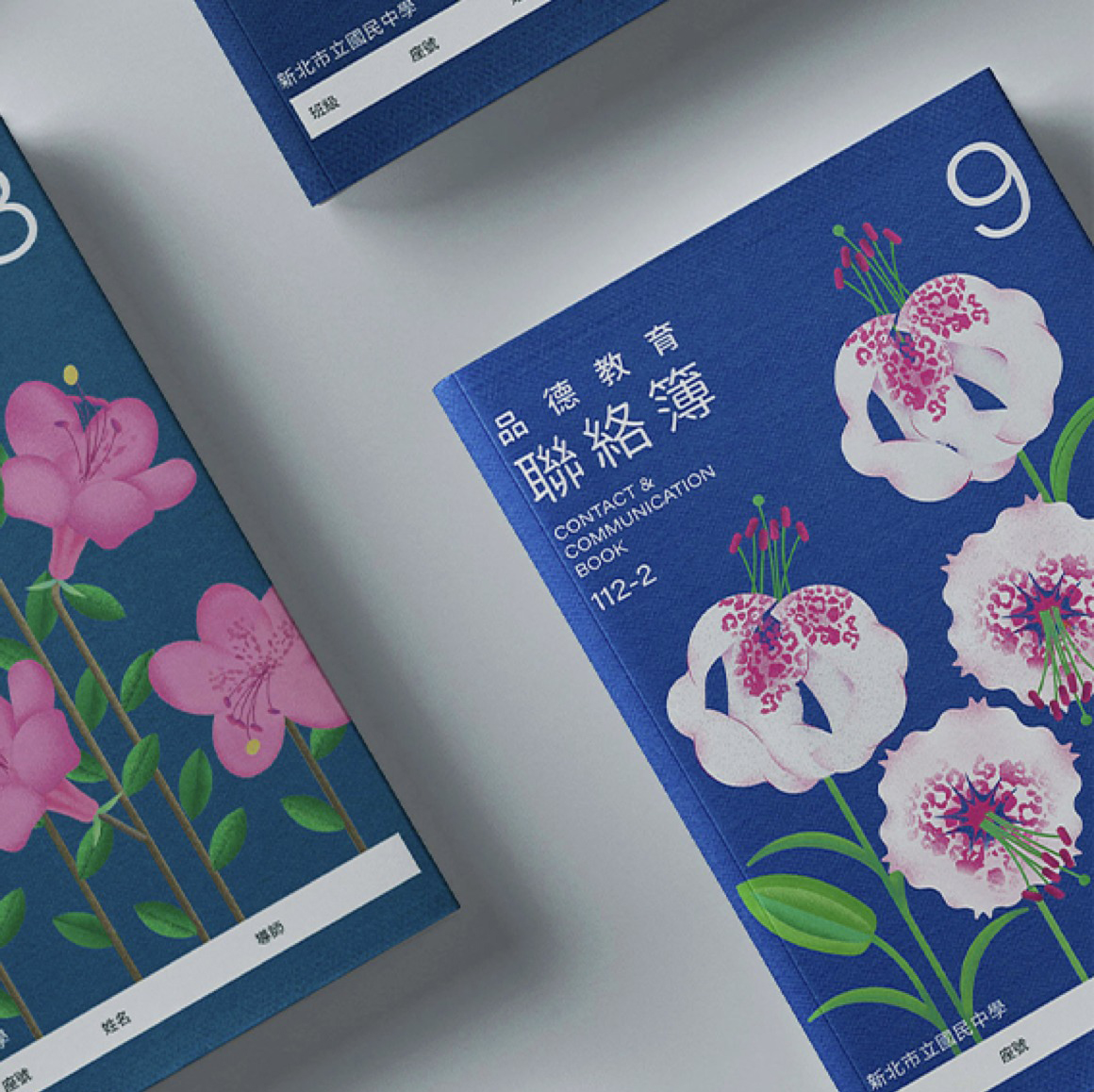 112學年新北國中聯絡簿,由 文化銀行 Bank of Culture 統籌規劃,邀請 Mak workshop 進行視覺設計。封面設計以三種「新北特有或重新復育成功的花卉」為基礎,透過幾何化和現代感的設計風格,創造出獨特且有吸引力的視覺,並以各自的特色來象徵國中三個年級階段的學習與成長。
