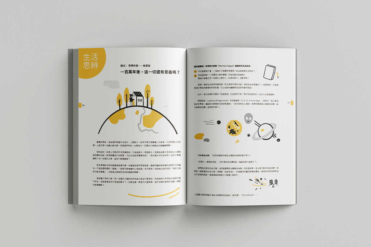 由哲學作家朱家安撰寫三篇文章,激發親師生一起進行生活思辨: